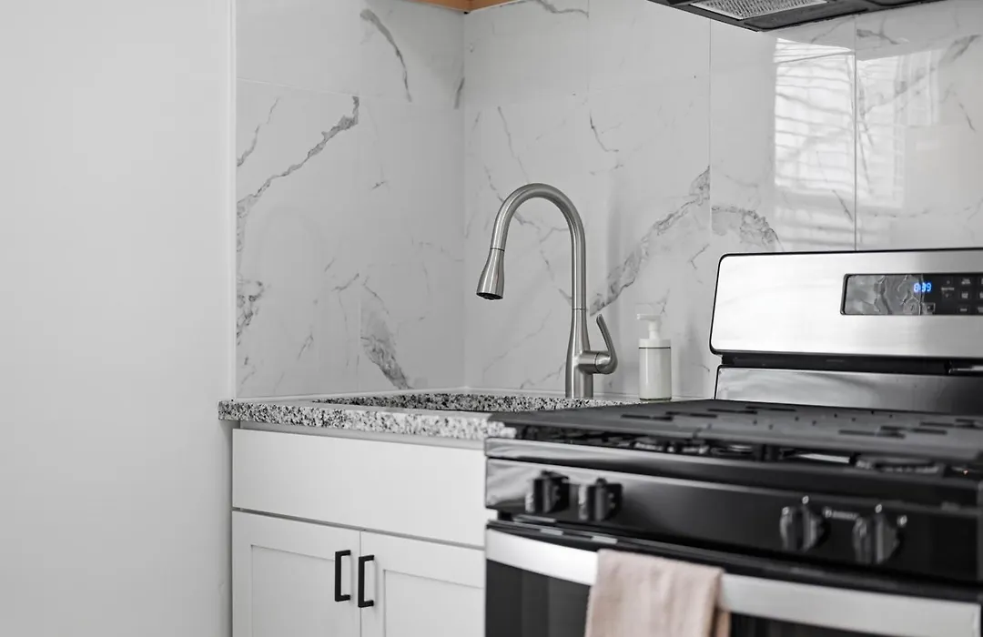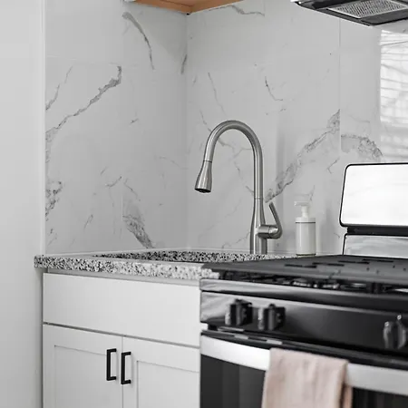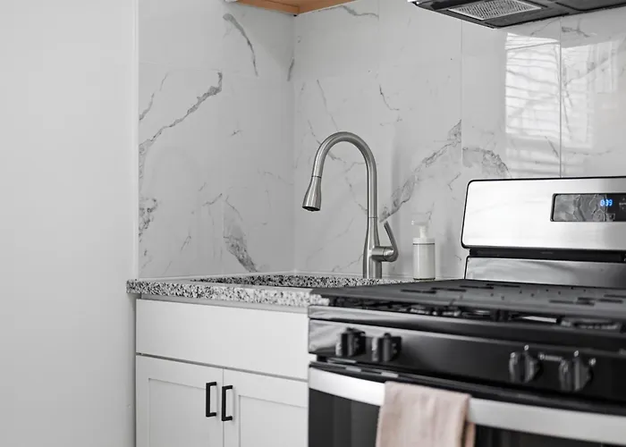 Eine komplette Küche mit einem Herd und einem Geschirrspüler gehört zu den Selbstversorgungsmöglichkeiten. Dieses Apartment ist ganz nah an der Stadtbahn Dormont Junction.